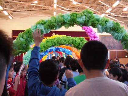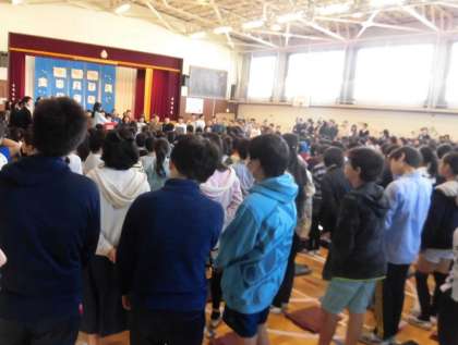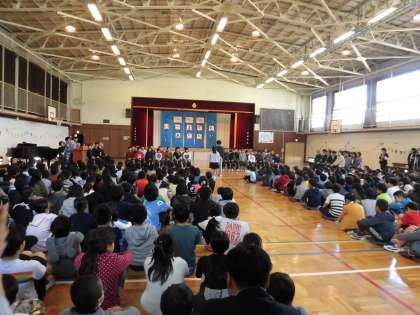 歓送式を行いました。校長先生方のお話、代表児童の言葉、最後に「ともだちのうた」をみんなで歌いました。