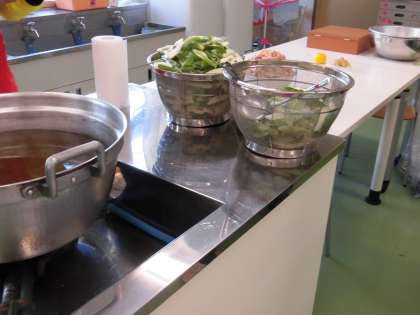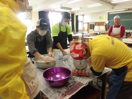 毎年、恒例となった 山崎メンズクラブの皆さんによるそば打ち。本日、行います。今、お父さんたちが準備をしてくださっています。