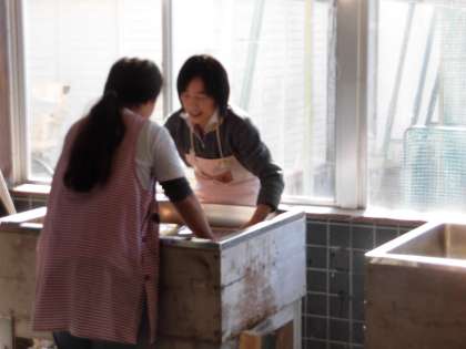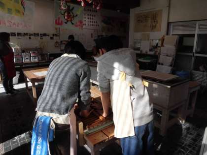 3学期に入り、6年生は自分の卒業証書を自分で漉く〜紙漉に取り組んでいます。心をこめて丁寧に作業を行っています。