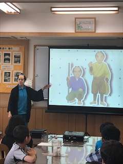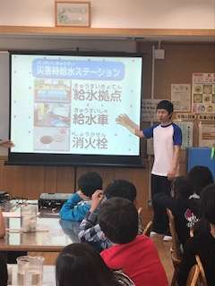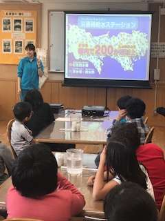 「水道キャラバン」に来ていただきました。工夫された豊富な資料だけじゃなく、劇団の方ですか?と聞きたくなるほどの演技力で楽しく水の勉強をさせてもらえました。カツラを被った水道局の方見えますか?