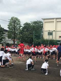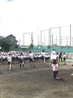 雨が上がり全校練習が出来ました。赤組白組の応援団が前に出て、エールの交換をおこないました。毎朝早く登校して練習してきた応援団です。本番に向けて気合い充分ですよ。