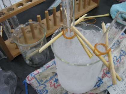 水を冷やして氷になっていく様子を観察しました。