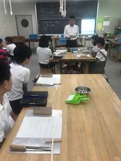 技術は箸置きを作っていました。数学は正六面体を折り紙で作るという授業。英語もゲームしながら楽しんで学んでいました。世田谷中学校の先生方が小学生のために一生懸命準備してくださったことがよくわかります。嬉しいですね。