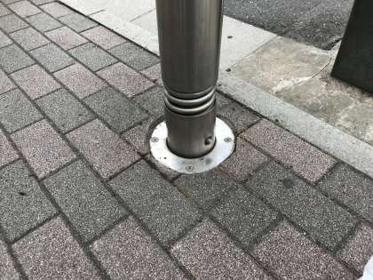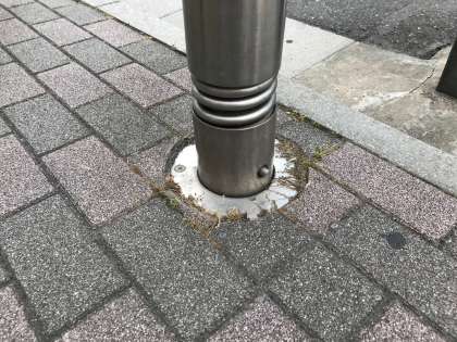 写真は駅の南側を出てすぐのポールの掃除のビフォーアフターです。