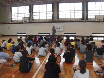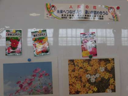 今年度、4年生は法務省による「人権の花」運動に取り組むこととなりました。これは、花を育てることを通して命の尊さを実感し、優しさと思いやりの気持ちを育むことをねらいとしています。世田谷区では他3つの小学校も行います。今日は、人権擁護委員の方に来ていただき、「人権の花」運動についてのお話を伺いました。このあと、4年生の有志の子どもたちを中心に、プランターに種をまき、花を育てていきます。