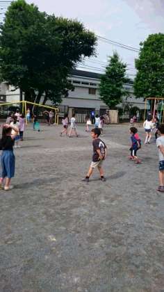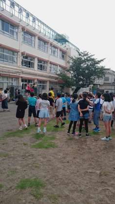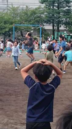 今朝の児童集会は、頭星人・肩星人・おしり星人という鬼ごっこでした。それぞれが自分の頭、肩、おしりに触れたまま、他の人をタッチします。タッチされた人は、タッチした人と同じ◯◯星人になります。集会委員が楽しくできるよう盛り上げてくれました。