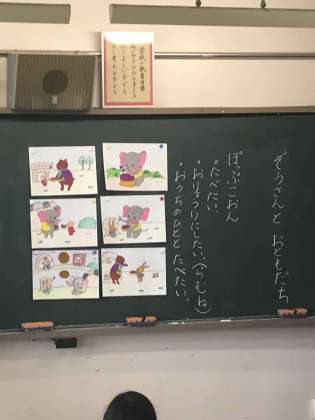 今日は1-1の道徳の授業にお邪魔しました。先生が手作りの紙芝居を作ってくれたのを見て子どもたちは、上手な絵に拍手喝采。先生、絵がうまーい。と大喜びで授業に参加していました。ぞうさんが作ったおいもがいっぱい採れたから、ぞうさんはお友達においもを分けてあげます。喜んだお友達はそのおいもをまた他のお友達に分けました。そうやって次々分けたおいもは再びぞうさんのもとへ。その晩、綺麗なお月様眺めてみんなは何を思ったことでしょうか?さあ、あなたはどう思います?