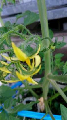 黄色い花の奥の小さい小さい緑の実。2年生が育てているミニトマトの実がつき始めました。3年生が育てているキャベツは葉がまとまり始めました。仲よし学級で育てているいちごも大きくなってきました。おいしく食べるときが待ち遠しいです。