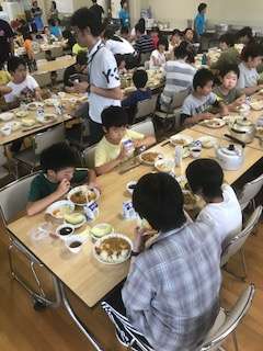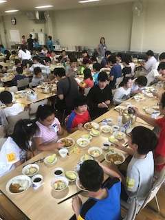 夕飯はカレーライス。美味しくいただいてます。この後はキャンプファイヤーが待っています。