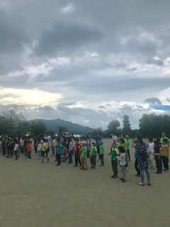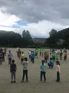 と朝の体操。みんな元気です。