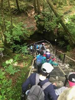 富岳風穴に入ります。とっても寒くてびっくり。みんな寒い寒いと大騒ぎです。