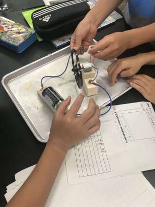 今日は4-1の理科の授業にもおじゃましました。電気のはたらきの学習です。理科専科の先生が手作りした実験キットを使ってみんな生き生きと勉強しています。