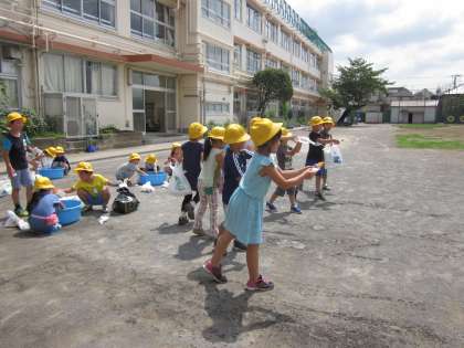 校庭に用意されていたのは、たくさんの大きなたらい。