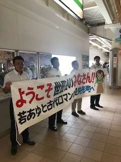 新庄駅にお迎えに来てくださった舟形のみなさんです。なんと『女神ちゃん』もお迎えに来てくれました。あたたかいお出迎えがとっても嬉しいです。ありがとうございます。