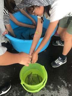 女の子は、鮎つかまえられるかな?と心配していましたが、みんなキャーキャー言いながら楽しんでいました。