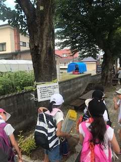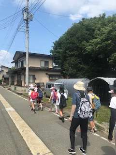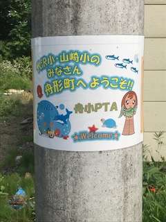 ウォーキングラリーの途中の電信柱には舟形のPTAのみなさんが貼ってくださった歓迎のポスターがありました。本当に大歓迎していただいてます。
