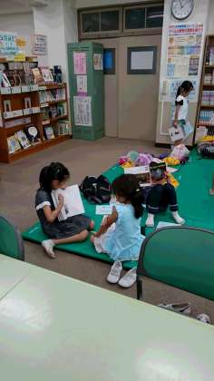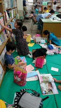 この夏も昨日から学校運営委員会による図書館開放が行われています。地域、保護者の皆様にお手伝いいただいております。ありがとうございます。子どもたち、思い思いの場所で、1人で、友達と一緒に読書を楽しんでいます。