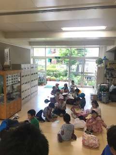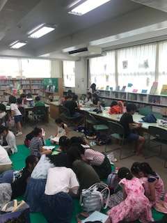 7/27金曜日。学校運営委員会主催の図書館開放は大人気です。町会長さんも様子を見に来てくださいました。みんな思い思いのスタイルで読書を楽しんでいます。