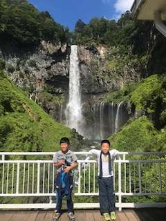 今朝の華厳の滝は毎秒1トンの水量。水しぶきが心地いいです。青空と滝のコントラストが美しかったです。ガイドさんの「華厳の滝どうでした?」の質問に子供たちは「きれいだった」と即答していました。