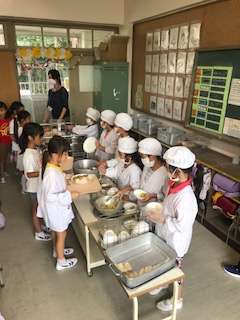 久しぶりの給食です。1-2のみんなは協力して上手に準備をしていました。