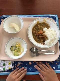 2学期の給食のスタートは、カレーライス。給食のカレーはやっぱり美味しいね。