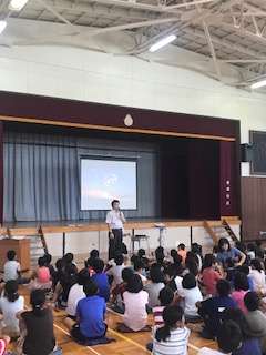 1〜4年生のセイフティ教室で、おまわりさんが質問しました。