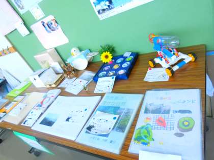 夏休みに取り組んだ自由研究がずらりと廊下に並びました。