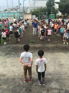 山崎小の全校朝会は、代表児童の挨拶から始まります。