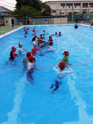 今年度最後の水泳指導は着衣泳を行いました。今日は、猛暑日が続いた真夏の水温と比べると低く、少し厳しいコンディションではありました。
