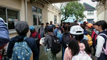 いよいよ5年生の川場移動教室が始まります。学校での出発式です。代表の挨拶も立派でした。