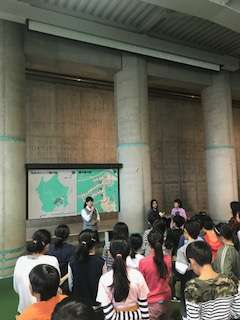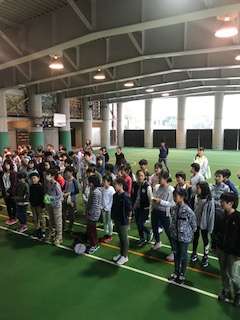 なかのビレッジに到着しました。砧小の皆さんと一緒に開室式です。