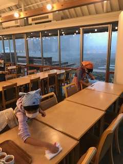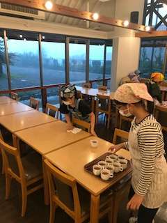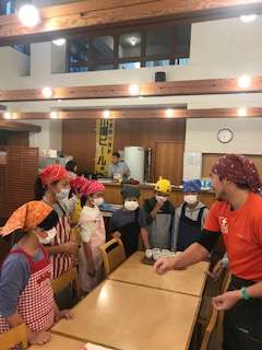 昨日は飯盒炊爨だったから、食事係さんは初めてのお仕事です。補助員さんのお話をしっかり聞いてテキパキと準備する食事係さん。とっても頼もしい姿です。
