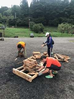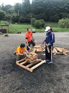 子供たちが部屋の片付けをしている間に補助員さんたちはキャンプファイヤーのセッティングをしてくれています。子供たちの楽しい時間は、こうやって裏方さんに支えられています。