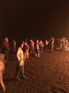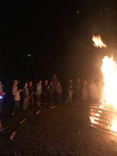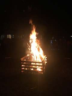 真っ暗な夜をキャンプファイヤーの炎が照らしています。