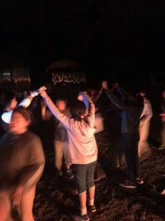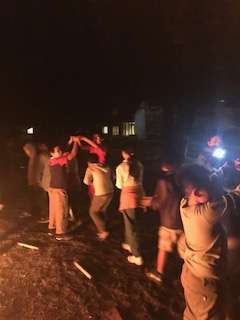 キャンプファイヤーの周りにロンドン橋がいっぱい。つかまった人は次々と橋になるゲームですり