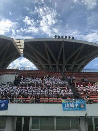 スタンドで起立して開会式をおこないました。
