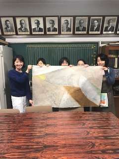 PTA紙漉き同好会の皆さんが、校長室のテーブルカバーの下にある和紙のテーブルクロスがかなり傷んでいるのを見て、新たな和紙のテーブルクロスを作ってくださいました。