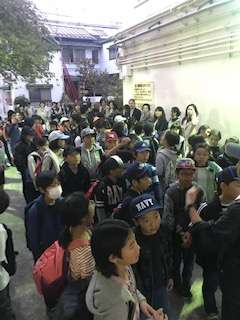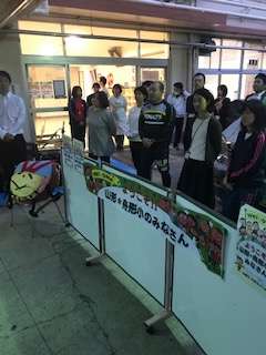 代沢小学校で歓迎会と交流会をして、山崎小学校に到着。山崎小学校の先生たちも総出でお出迎え。ようこそ世田谷へ。ようこそ山崎小学校へ。