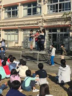 本日の児童集会の様子です。集会委員が「キャッチ」というゲームを企画してくれました。縦割りのなかよし班でおこないます。班のみんなでぐるりと円を描き、仲良く楽しく遊べる山崎の子どもたちです。ポカポカ陽気で気持ちいい朝になりました。