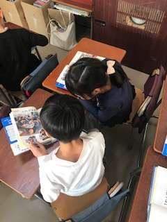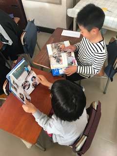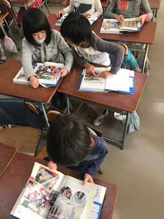 2-2のみんなは、いただいた本を夢中になってめくっています。
