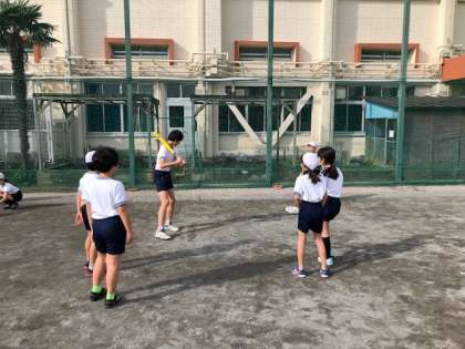 6年生の体育では、ティーボールをやっています。