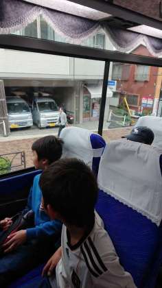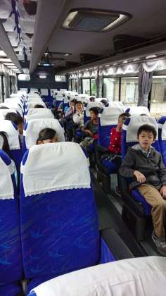 バスに乗ってのはじめての社会科見学です。「豪華なバス!」、「これに乗っていくの?学校なのに?」、「学校に感謝しなきゃ。」乗る前から大喜び。