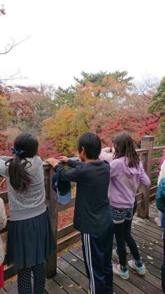 等々力渓谷に来ました。渓谷の様子を見学しました。紅葉もきれいでした。