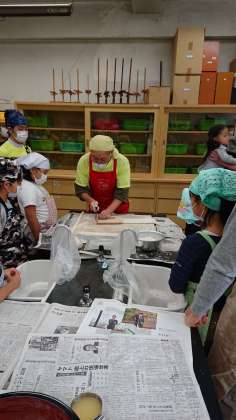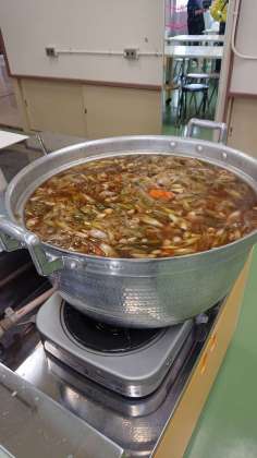 毎年恒例のメンズクラブの皆様によるそば打ちです。まずはデモンストレーション。おつゆもとても美味しそうにできあがっています。