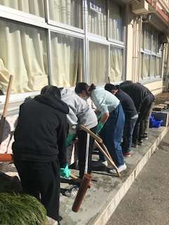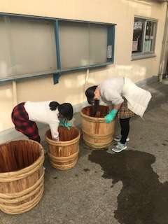 今日ももちつき会終了後、学校を代表して三土代会の皆さんに御礼を言い、お借りした臼や杵を綺麗に洗ってくれていました。素晴らしい6年生です。