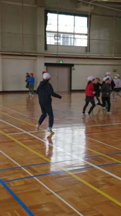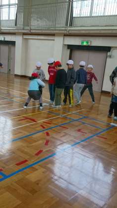 本日、3、4時間目に仲よし学級との交流会を行いました。3時間目は、体育館で、ドロケイ、ライン歩き、ストラックアウトです。みんな、楽しそうです。