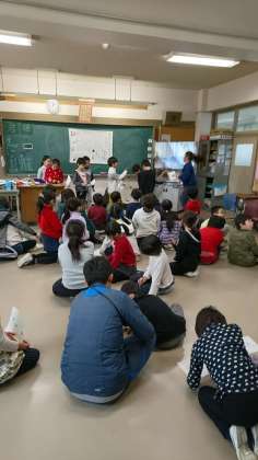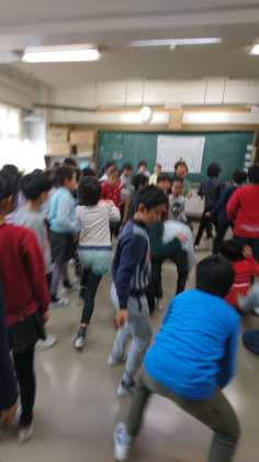 4時間目は、3年1組でセンドボール、ハンカチ落とし、ビンゴをやりました。