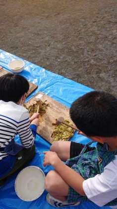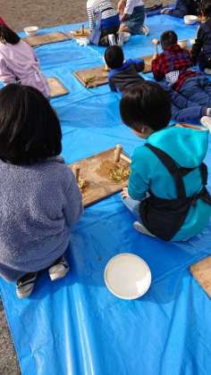 4年1組が、今日は叩解をしています。こうぞの刈り取りから今まで手間をかけてやっとここまできました。このあと、いよいよ紙漉きです。