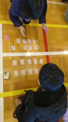 1・2時間目に百人一首大会が始まりました。詠み手の声に集中しながら、取り札を一生懸命に探して嬉しそうに取っていました。さあ、三年生、四年生のどちらのチームが勝利するのでしょうか??楽しみです。