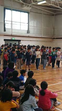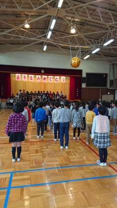 4年生は、6年生の思い出の群読とリコーダー演奏。3年生は6年生が3年生の運動会で踊ったダンス。1年生はお世話になった感謝の気持ちを伝え、歌を贈りました。